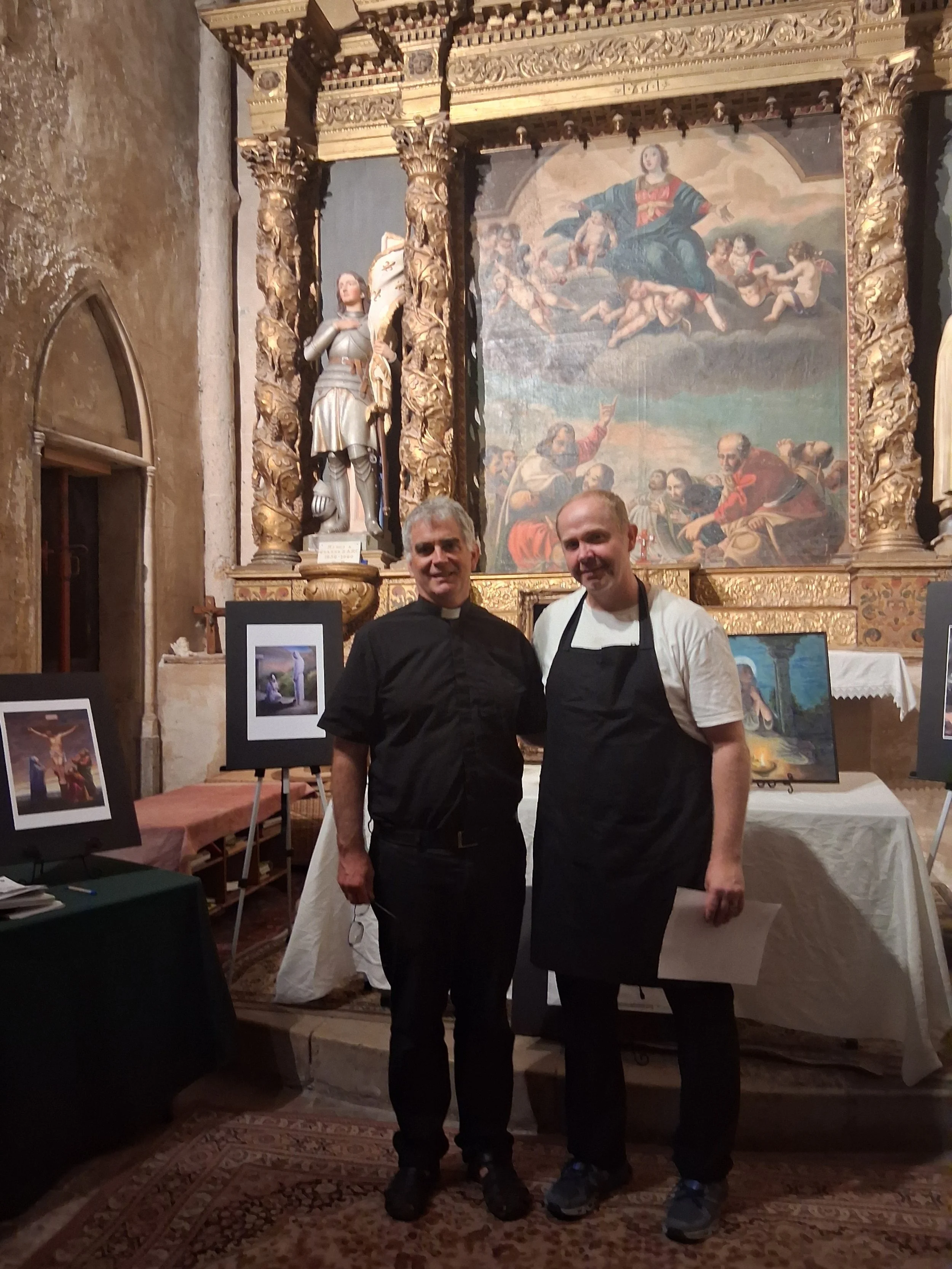 The Sanctuary is just a minute’s walk from our hotel, and I was fortunate enough to meet Father Racine, who welcomed us with open arms. He was incredibly supportive of our mission and graciously allowed us to exhibit our artwork in the third most important grave in the world. The honor of showcasing our collection here, in such a sacred place, was truly humbling.